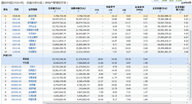 根据wind数据统计,可以看出融创2017的预测市盈率在16.13,市净率在2.1左右,这两个指标均是高于行业平均值,主要是跟它的高速成长与有关,高市盈率反映的是高速成长过程中大家对未来的判断,会给予比较高的估值,而当企业增速放缓时,估值则会更接近公司本身的价值,这时上涨空间同样会缩小。