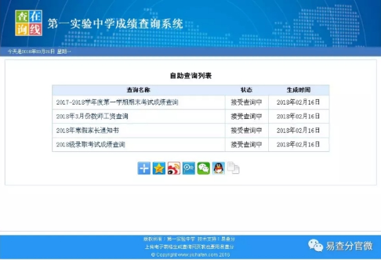 老师从微信登录易查分学生成绩查询系统的界面: