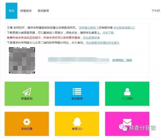 易查分的界面简洁干净专业,这是老师从电脑上登录易查分的界面