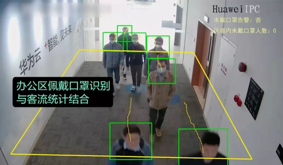 据了解,华为云提供的智慧园区疫情防控解方案结合华为云EI及边缘智能技术,一旦发现员工未佩戴口罩,则会马上记录并发出预警,有效解决了人工检测带来的种种问题。值得一提的是,华为云智慧园区解决方案还通过端边云协同的优势,在不增加园区监控摄像头等硬件基础上,也可实现园区全场景全天候全区域的口罩监控能力覆盖。
