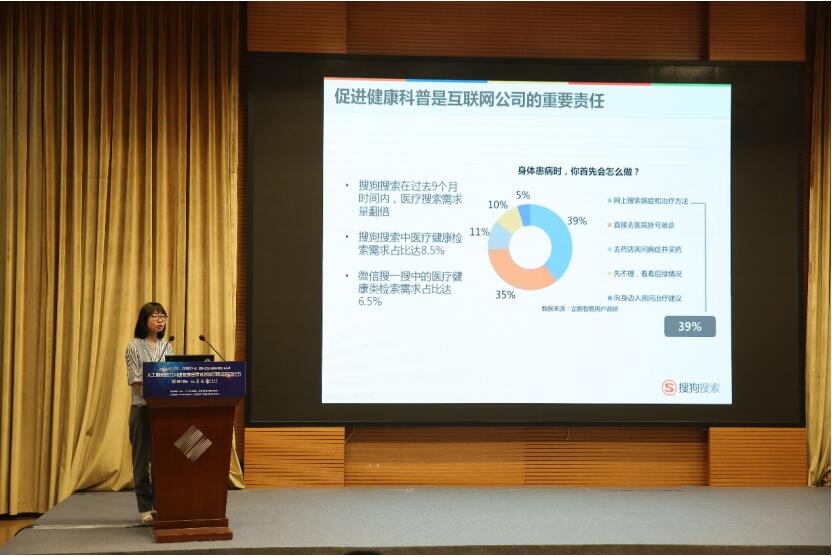 (图:搜狗搜索高级总监、搜狗明医总经理韩异凡在会上演讲)