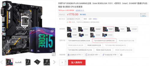 华硕TUF B365M-PLUS GAMING主板用料扎实、做工精湛,采用高效供电解决方案和全方位散热设计以及创新的游戏增效技术,更是凭借强悍实力包揽两项权威大奖,是玩家不可或缺的高性价比游戏主板。搭配同样颇具性价比的Intel酷睿I5-9400F处理器,堪称当下最热门游戏组合!现在购买板U套装仅需1779元,套装价格更实惠,还不抓紧下手。板U套装链接:https://item.jd.com/100005786798.html
