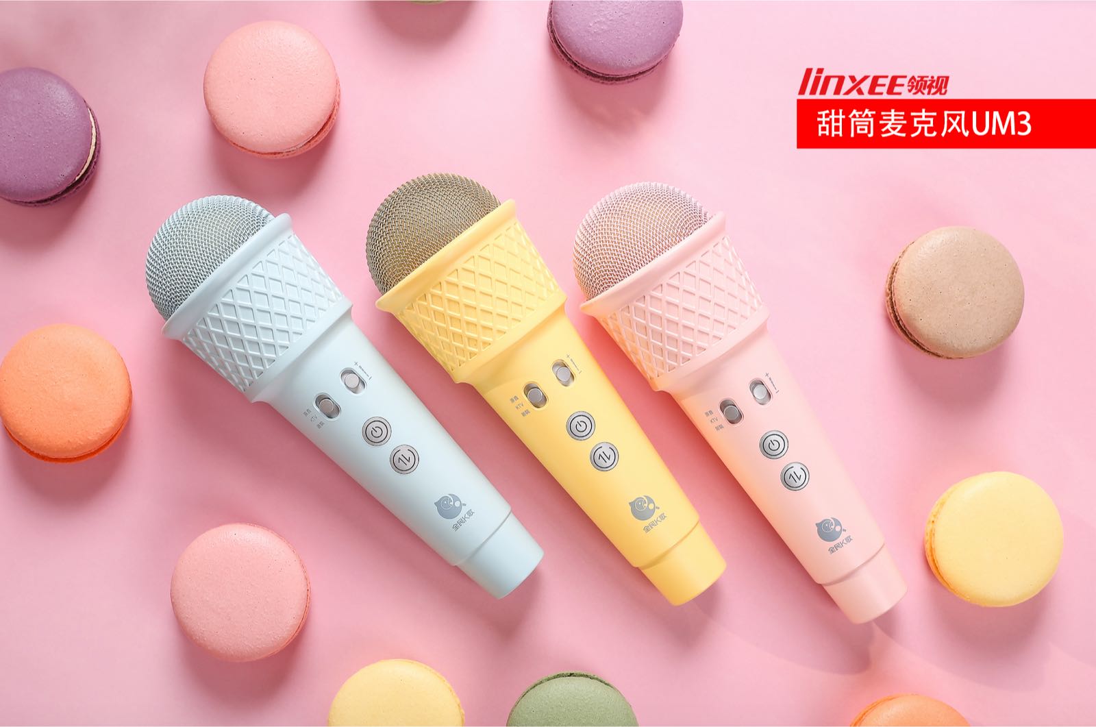 此次Linxee领视还携众多明星K歌新品亮相,据介绍,K歌麦克风UM3是一款Linxee领视专为年轻人打造的智能麦克风,小清新的甜筒麦克风造型,加上马卡龙甜美的色系,每一款麦克风都能俘获少女的心,专业音质体验与时尚年轻的设计融于一身,展会期间备受关注。据Linxee领视市场部负责人介绍,K歌麦克风UM3告别传统DSP芯片,内置智能芯片,能够实现录干和录湿;还有拾音咪头,悬浮防尘,防喷麦,30厘米的收音距离,让音色完美收录;及时耳返,KTV立体环绕耳返效果,不用花钱,却仿佛置身KTV中;20小时超长续航,练唱/录歌/直播一机搞定;兼容多系统,如安卓、苹果、windows系统,化解了以往音频产品设备、平台不兼容的尴尬。