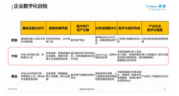 数字化意味着机遇,比如易观做了企业数字化自检,孙梦子强调,作为企业的决策层,在数字化进程中要有一个数字化发展规划蓝图,在这个过程当中,员工和组织发展状态、员工和工具的关系等状态都因该有清晰的规划。此外,对应不同状态下的数字化解决方案,如何集成到企业自身的平台上解决现状的痛点问题,甚至在未来的发展中企业应该更加重视哪些业务问题,都应该有清晰规划,这需要企业有一个柔软且灵敏的组织去适应企业不断迭代的发展要求。