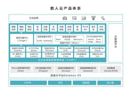 数人云重点聚焦打造基于容器的极轻量级PaaS平台,在实现应用全生命周期管理的同时,管理海量监控、日志等产生的各类数据,自动分配应用资源、对业务运行状况进行自动分析。数人云产品体系创新性地升级为企业应用架构管理体系(EAMS),实现业务、应用、架构和IT管理四者和谐统一,满足企业双态IT需求,实现IT敏捷化自动化。借鉴国外SRE的实践经验支持DevOps落地,提升企业IT工业化程度,构建灵动新IT。