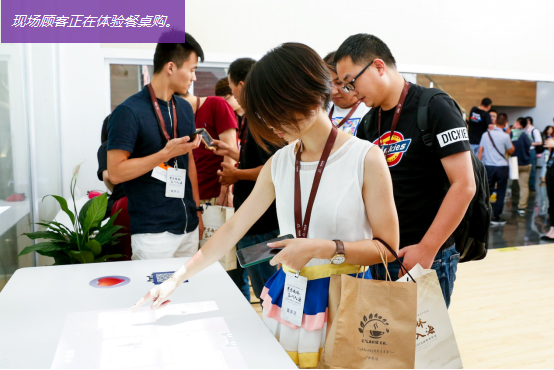 当天体验店中最耀眼的场景莫过于餐桌购,创新的交互方式引得与会者惊叹连连。该解决方案可将商品页面投影至普通餐桌上,消费者可在餐桌上浏览并选择自己心仪的商品,扫描二维码后即可添加到淘宝的购物车。相比以往基于触摸屏的操作,在餐桌上直接操作投影可以给消费者带来科幻般购物体验的同时也能为各品牌商吸引线下流量。如此前所未有的购物体验,其背后是NEC对体感捕捉技术的深耕细作及对增强顾客体验孜孜不倦的追求。