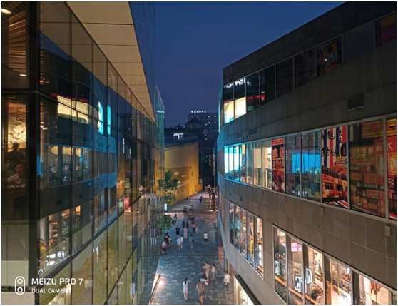 在夜间拍摄效果上,通过样张可以看出,PRO7表现的也异常出色,彩色镜头记录色彩信息,画面中的色彩十分丰富,色彩还原相当到位;黑白镜头捕捉了层次与细节,建筑物的线条也都比较锐利,同时大幅提升进光量,搭配多帧降噪算法,噪点抑制效果出色,画面远处天空中的噪点也完全可控,样张的基本画面素质处于极高的水准,即便是单反,恐怕拍摄效果也不过如此。