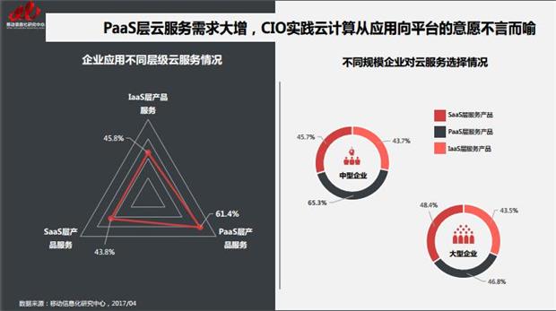 数据显示,企业对IaaS层需求占比45.8%,对PaaS层需求占61.4%,对SaaS层需求占43.8%。这表明,企业对PaaS层的需求,特别是在大型企业里面,已经成为CIO们选择CRM的标准配置。