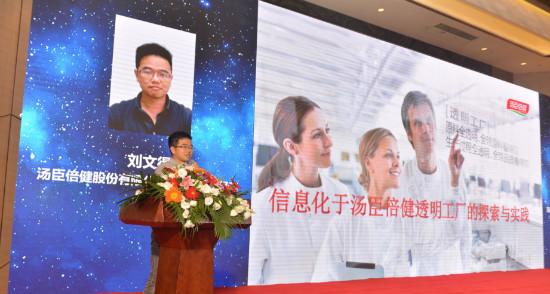 汤臣倍健股份有限公司精益管理部经理刘文得做主题为《信息化于汤臣倍健透明工厂的探索实践》主题发言