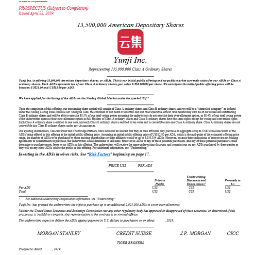 根据招股书,本次云集将在首次公开募股中发行1350万股美国存托凭证,按照最高发行价计算,包括承销商执行超额配售的202.5万股美国存托凭证,在扣除各项费用和佣金之前,云集将最多募集到2.018亿美元。