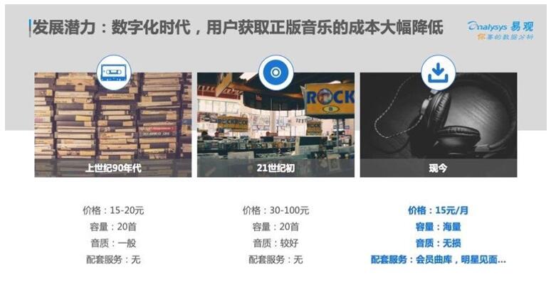 回想实体唱片时代,磁带、CD的价格通常在15元左右起步,但彼时的音乐不得不困在固定的条框里,有限的内容、单一的形式给音乐体验附加了许多条件。而进入数字音乐时代,同样是一盒磁带、一张CD的价格,用户获得的已不止是内容量的提升,还有增值化的服务体验。