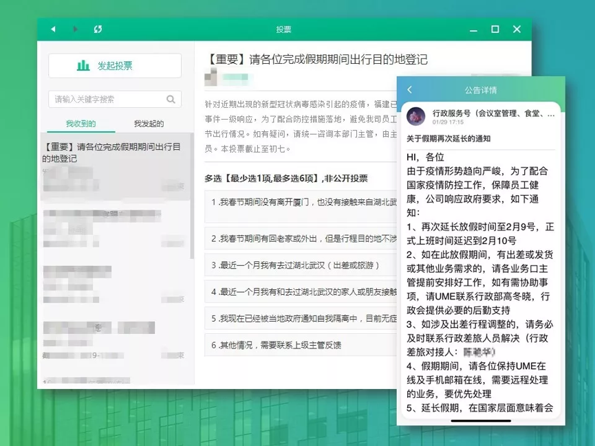 疫情信息全员公告,远程收集健康情况