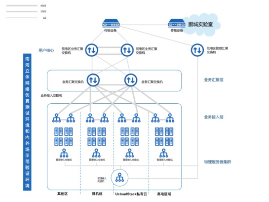 针对鹏城实验室无法虚拟化及上云的物理机环境及业务,为解决快速交付和网络连接场景,UCloudStack 提供托管网关服务,让南海项目课题组像使用物理机的内网一样,访问IDC物理网集群的应用。由于整个场景通过万兆链路连接且是内网互通,可在保证通信性能的同时,给予一定程度的网络安全性保障。