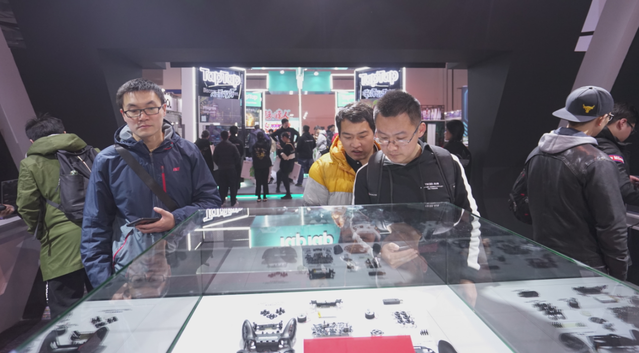 在展位内,我们设置了多个产品展柜,摆放有北通刺影格斗手柄、北通神鹰游戏手柄、北通阿修罗2游戏手柄等十数款深受玩家喜爱的北通产品,不少北通粉丝玩家们都在这数个展柜前驻足了较长时间,深思浅笑,仿佛通过这些产品在回味着与北通一同共度的游戏生涯。