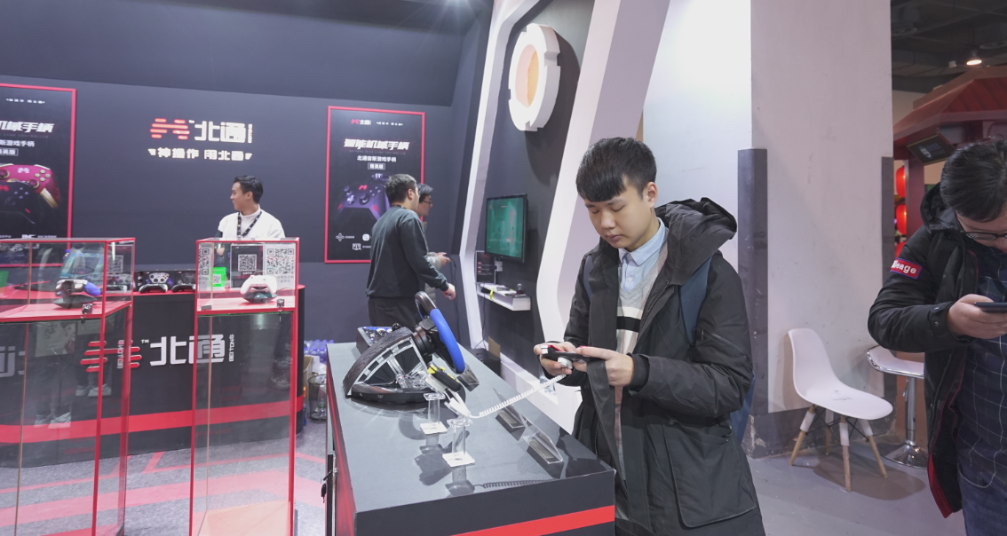 在向大家展现我们产品的同时,也设置了北通宙斯游戏手柄体验区,观众朋友们能在其中体验到使用这款机械精英手柄畅玩游戏的快感,甚至有粉丝玩家流连其中1、2个小时,试玩得乐此不疲。不少的朋友在体验过后即现场购入了北通宙斯游戏手柄。