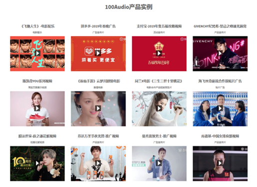 截止2018年末,100Audio的总收入实现高速增长,达到2017年一整年总收入的9倍。今年以来,不仅为韩寒导演的贺岁喜剧电影《飞驰人生》提供了配乐,拼多多2019年央视春晚广告音乐也来自该平台。