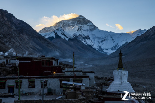 绒布寺不仅是寺庙和住宿的地方,也是拍摄珠峰的合理前景。一般雪山拍摄分为日照金山和夕照金山两种,绒布寺和大本营看珠峰是正南方,因此日出和日落都可以拍摄。但是由于珠峰形状,所以日落的效果要好于日出。日落时分我们可以看到金顶,以及最后一刻的红光。而日出时则看不到。