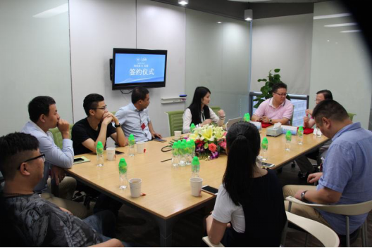 红檬智能朱总(右)和物联通马总(左)深圳物联通营销服务有限公司是腾讯智能物联产品及腾讯云数据接入战略合作伙伴,致力于为国内外广大智能物联企业提供接入知名品牌智能生态圈及项目产品全程技术开发指导、品牌推广宣传、国内外全通路营销体系建设及金融支持,为合作企业提供全程、全面、全线的战略伙伴式服务。