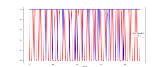 在对单个用户行为是否造假进行分析时,选择单个用户的各项特征为自变量,以“是否播放”为因变量,得到预测图形如下。从图形中可以看到被调查平台实际值大部分都是“播放”,而通过成熟平台训练后的模型预测只有部分为“播放”,预测和实际值差距明显,存在数据舞弊可能。