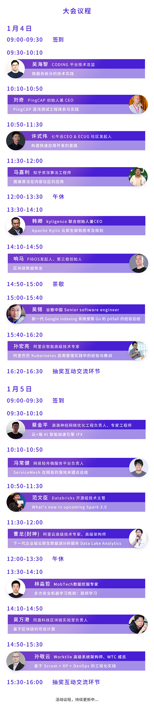 除此之外,还有来自七牛云、阿里云、知乎、谷歌中国、PingCAP等众位大咖带来的精彩演讲议题,获取更多演讲干货可报名活动现场参与。