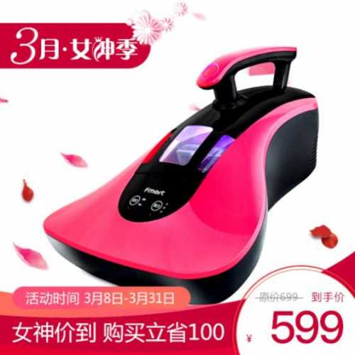 福玛特除螨新宠400UV—C,采用一拍二杀三扫四吸的清洁模式,两个震动头高频拍打,以每分钟4000次拍打频率,将床上的灰尘、细菌、过敏源、螨虫等震动拍出,飞利浦紫外线杀菌灯强效杀死拍出的螨虫,3000pa超大吸力与HEPA滤网,一次性将杀死的螨虫清除,防止二次污染。让您每晚远离螨虫骚扰,静享好梦。3月8日至3月31日期间,福玛特官网女神节特价优惠,原价699元,现价599元!