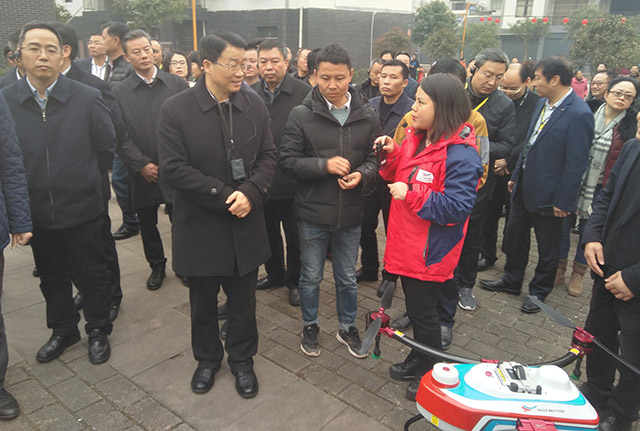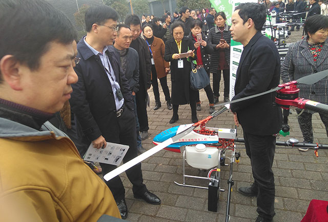 据现场工作人员介绍,无人机植保与传统人工相比,劳动效率提高20-30倍,节约了30%农药使用量,远距离操控施药大大提高了农药喷洒的安全性,而且采用植保无人机喷洒作业比传统方式喷洒更加均匀,针对南方地区的水田、丘陵、山地还有高杆作物等大型器械进不去的地方无人机也能喷洒作业。