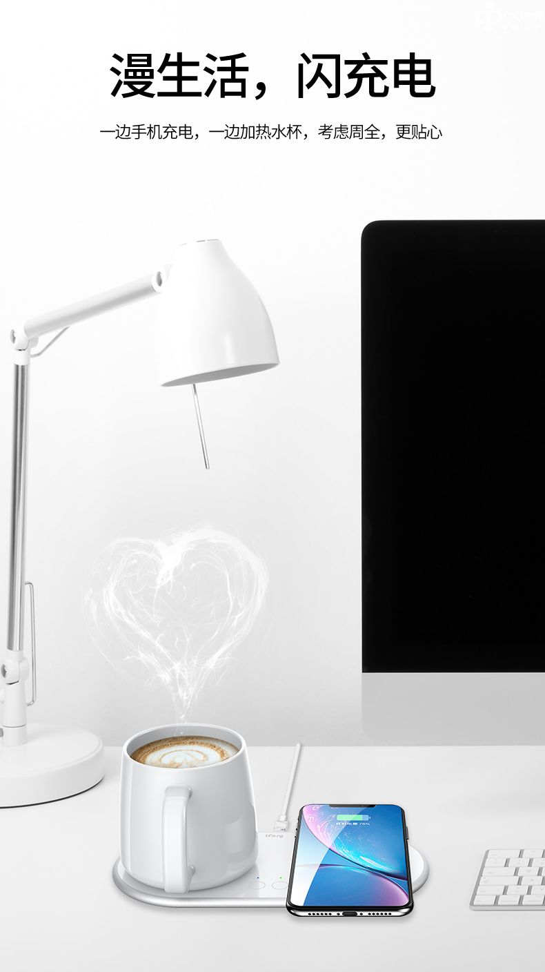 iFory全新力作——手机充电+水杯加热二合一无线充电底座