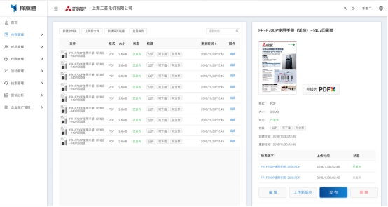 通过“系统管理”,企业管理人员可通过样本通后台管理企业内部所有供营销活动使用的产品信息,支持产品信息/资料版本和发布管理,集中管理,支持多用户群组和权限设置,灵活配置用于各种组织。样本通4.0版后台操作更加简单,易于管理,提升市场人员工作效率,帮助企业市场部实现产品信息管理并支持数字化运营。
