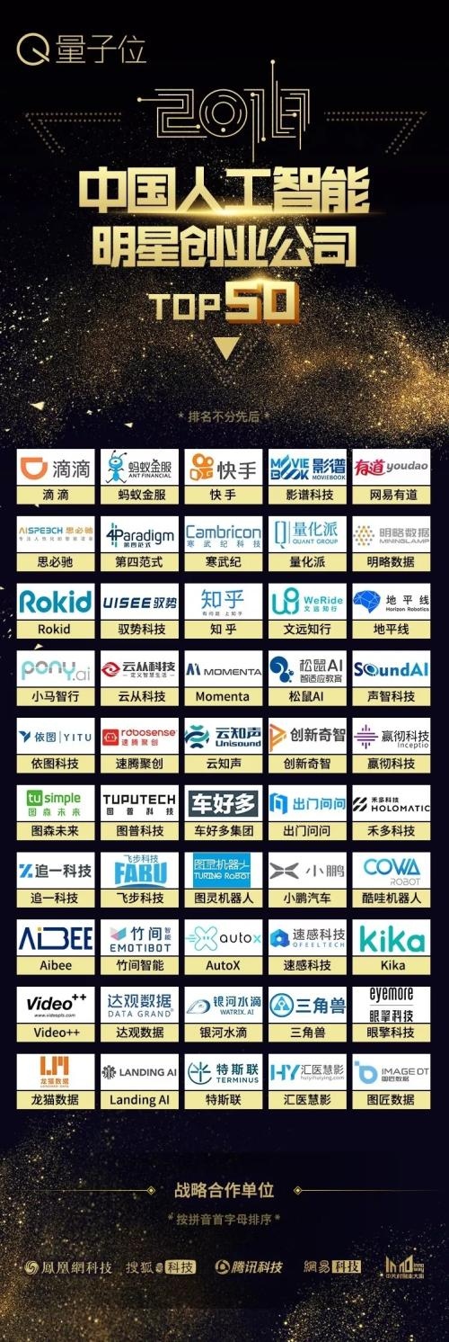 附:量子位中国人工智能明星创业公司TOP50榜单