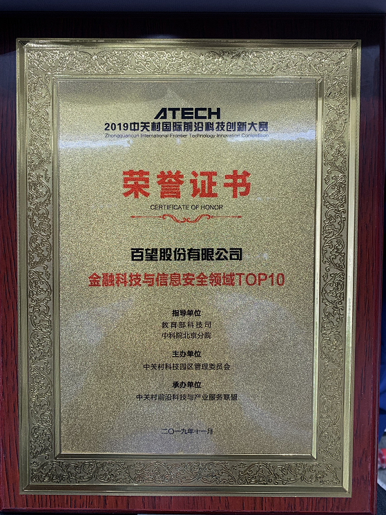 (百望云成功入围“2019中关村国际前沿科技创新大赛”金融科技与信息安全领域TOP10)