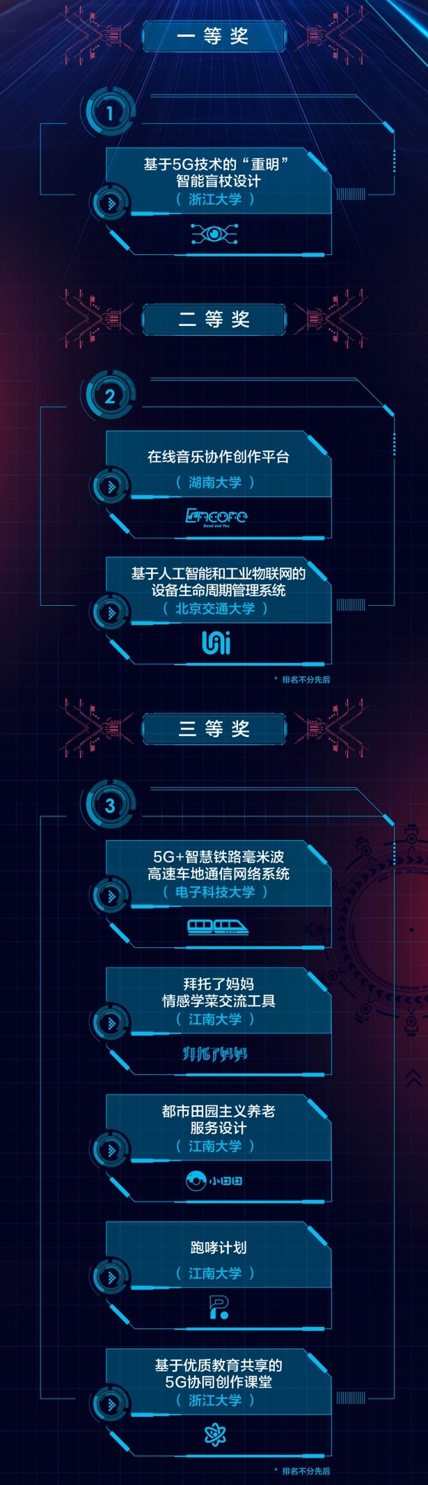 (5G应用设计揭榜赛校园分赛完整获奖名单)