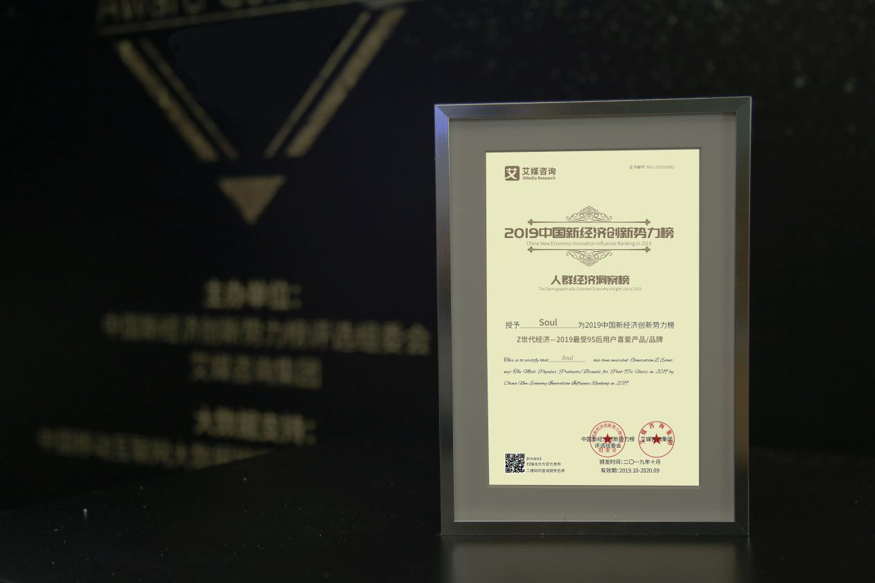 10月21日,由全球著名的新经济行业第三方数据挖掘与分析机构iiMedia Research(艾媒咨询)主办的“2019中国新经济创新势力榜人群经济洞察榜”圆满落幕,重磅榜单随之揭晓,旨在对大数据领域中表现突出的企业进行表彰。在本次评选中,作为优秀企业代表,Soul荣获“Z世代经济—2019最受95后喜爱产品/品牌”奖项!