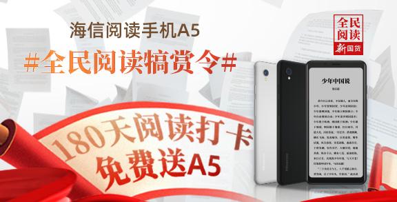 目前,海信阅读手机A5在京东持续预售中,已经拿到手机的用户可在11月1日0点-11月30日24点这段时间内任意时间启动阅读打卡挑战,只要坚持每日连续阅读打卡,即享全民阅读补贴福利!用户连续打卡7天返现10元,连续打卡15天返现20元,连续打卡1个月返现30元……最后坚持打卡连续180天即完成了打卡挑战,成功后累计返现1199元,相当于免费获得了海信阅读手机A5!大家可关注“海信阅读手机”微信公众号,以便后续领取阶段相应奖励,详细活动规则关注海信手机京东自营旗舰店查看。