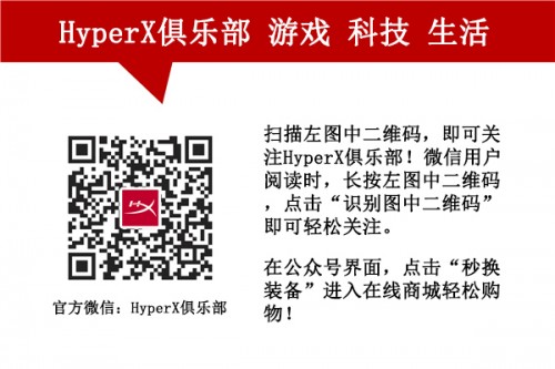 欢迎关注HyperX俱乐部微博(http://www.weibo.com/HyperXclub)与微信公众平台(微信号:HyperXclub),参加最新活动,交流产品心得。