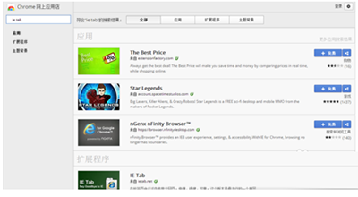 点击后进入“网上应用”,在网上应用的左上角的框框中填写“ie tab”然后回车。