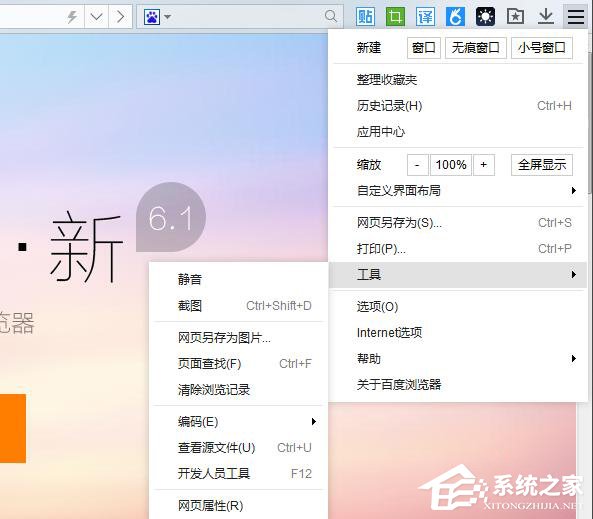 1、和其他国内的浏览器(如搜狗浏览器)一样,百度浏览器同样融合了chrome内核和ie内核
