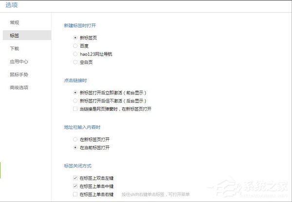 1、百度浏览器和其他浏览器一样,内置很多功能,这些功能和其他浏览器的内置功能类似,包括“常规设置”、“标签设置”、“手势设置”,百度浏览器的“手势设置”是不能自定义的