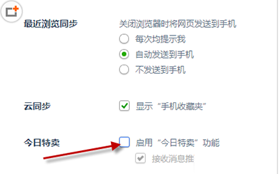 3、找到【今日特卖】,将【启用“今日特卖”功能】前面的对号去