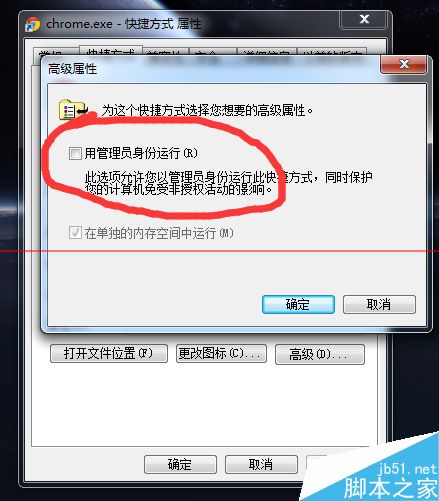2、你每创建一个Chrome快捷方式(不管是重装系统创建还是重装浏览器创建还是自主创建),它的权限都会重置,所以每次创建新的Chrome快捷方式都要勾一下那个管理员才行。