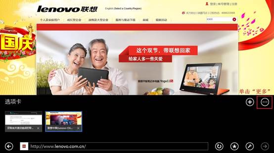 步骤一:打开UI版IE11后,右击网页空白处,点击“更多”,如图所示:
