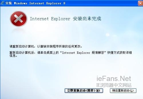 我们今天要说的问题是有网友在安装IE8的时候却遇到了故障,就是在安装的过程中每次都提示“Internet Explorer安装尚未完成”,等重启后还是没有解决问题。