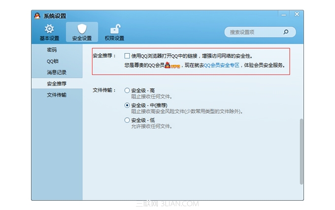 如果您安装是QQ2013版本,可以在主菜单-系统设置-安全设置-安全推荐 中取消相应的勾选: