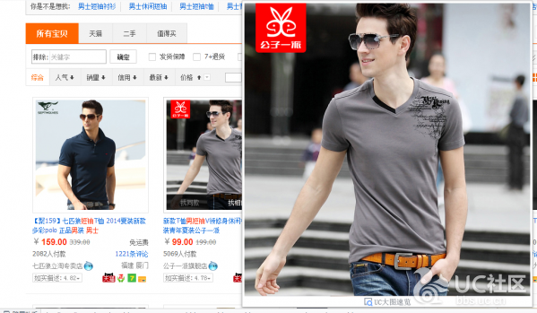 作为一名屌丝,除了陪基友玩游戏,当然也会偶尔逛逛淘宝,而uc这个大图浏览功能,确实很方便,有木有!只有将鼠标光标移到相应的商品图上面就可以看到大图,可是当我打开京东的时候,发现这个功能不能用了,原来这个功能是专属淘宝的,原因可能主要是阿里巴巴和uc是好基友的关系吧,但是从用户角度,还是希望这个功能可以应用与其他网站的。