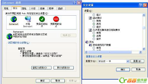 2、选“安全”选项,点“自定义级别”