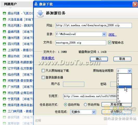 图4 通过傲游浏览器下载设置用户可手工选择地址线程数量