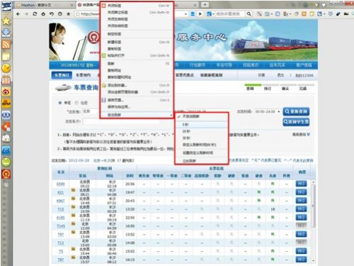 如果通过查询,发现没有余票,那么就需要上网“刷票”了。傲游浏览器“自动刷新”功能助你秒杀一步到位。让你自行设置刷新速度,轻松刷网页,网购火车票轻松搞定。