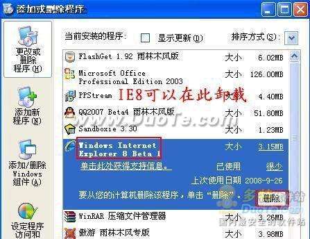 在Vista中依次执行“开始→控制面板→程序”,单击下面的“卸载程序→查看已安装的更新”,在下拉列表中找到IE8,选择中其并但单击上部的“卸载”选项即可完成卸载。在XP中因此打开“开始→控制面板→添加或删除程序”,在列表中找到IE8,单击“删除”即可完成卸载。(图11)
