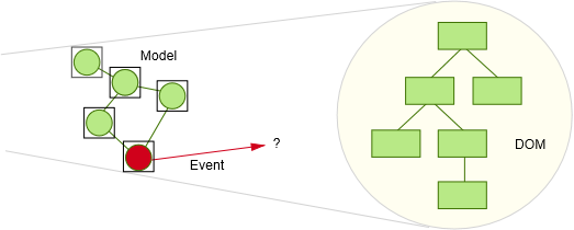 Ember?和?Backbone相似,当变动发生时,从模型往外发出事件。不同在于Ember还为事件的接受端提供一些功能。你可以把UI和数据模型绑定在一起,这意味着,有一个监听器附加到UI去侦听变更事件。这个监听器接到事件以后知道应该更新什么。