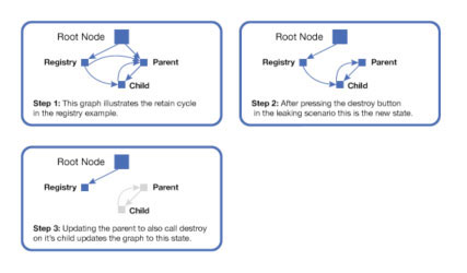 但是,如果引入了第三个保留该子对象的对象,该循环会导致内存泄漏。例如,创建一个?registry?对象,如清单 9 所示。