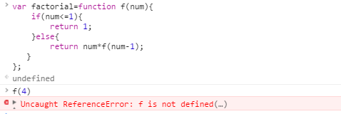 缺点:这个函数的执行与函数名?factorial?紧紧耦合在一起。万一出现改变函数指向的这种情况就不太好了,factorial=function(){} factorial(3);// undefiend为了消除这种现象。